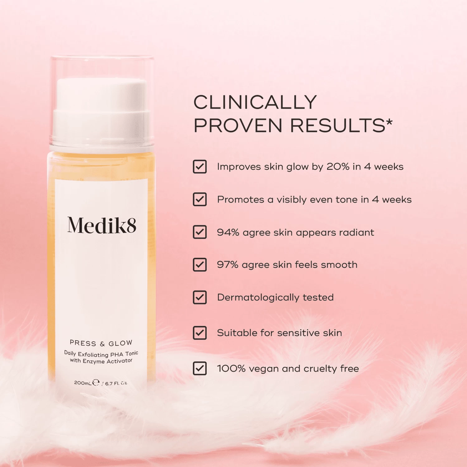 Press & Glow is clinically proven to deliver glowing skin in just 2 weeks!*